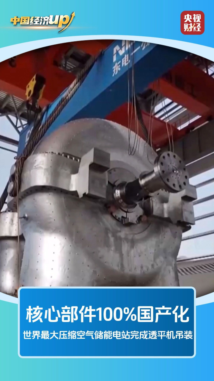 据央视新闻11月29日消息,11月27日,世界最大压缩空气储能电站——华能金坛盐穴压缩空气储能二期项目顺利完成透平机吊装,正式进入主设备安装阶段。